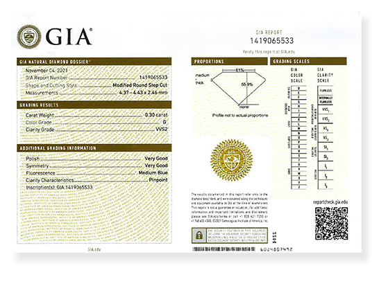 世界的権威「GIA」発行の鑑定書にて品質を証明