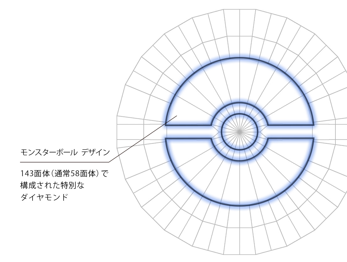 モンスターボール デザインの視認性とダイヤモンドの輝きを最大限に引き出したカッティング。