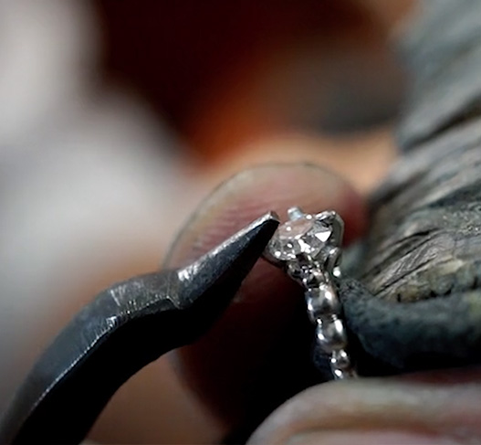 自社独自の厳しい検査基準をもとに、バイヤーが原石を一つひとつ見極め、特許技術も取得しているダイヤモンドカッターが最高の輝きを生み出します。