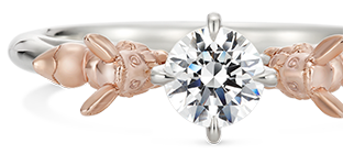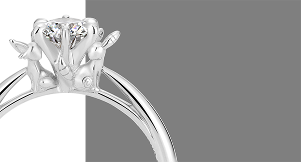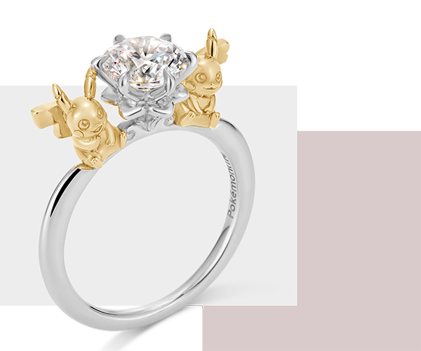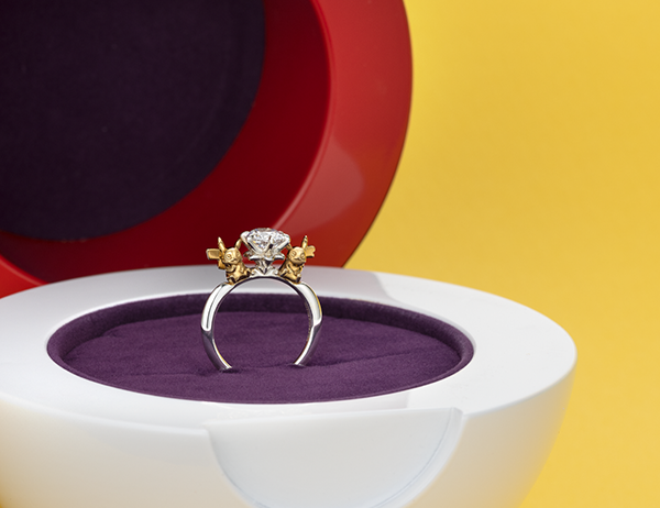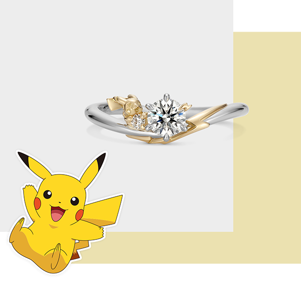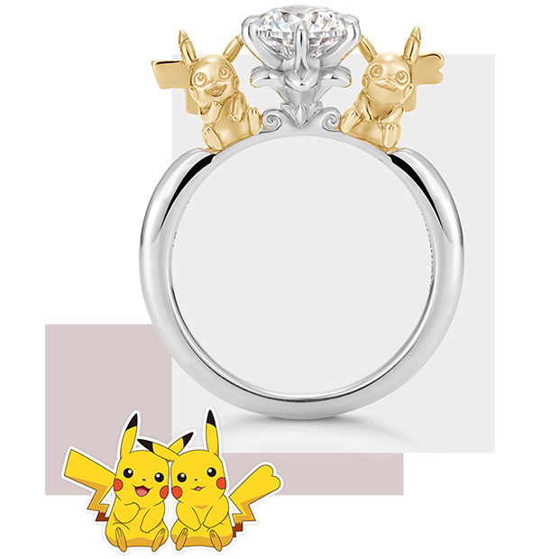 2匹のピカチュウは通常のエンゲージリングとは違い1カラットのダイヤモンドに合わせた特別仕様。ダイヤモンドに負けない大きさのピカチュウが大きなダイヤを引き立てます。