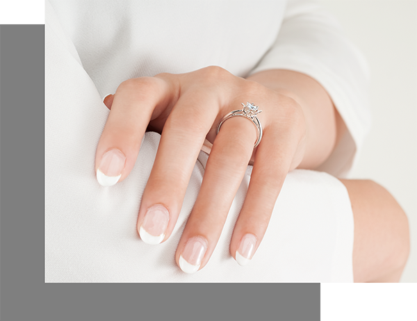 指を長く、きれいに見せてくれるウェーブラインのエンゲージリング。
