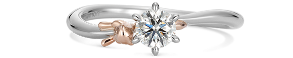 緩やかなウェーブラインのエンゲージリングは中央に向かってアームが細く絞られているため、ダイヤモンドの華やかさがより引き立ちます。