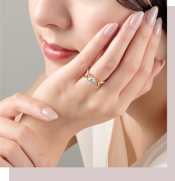 身に着けた際は、 遠くから見てもエーフィとブラッキーの耳がちょこんと見えるのが、このリングの愛らしいポイントです。