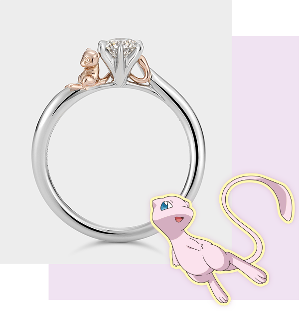 幻のポケモン ミュウが、ダイヤモンドの横にちょこんと座っている様子が愛らしいデザインです。