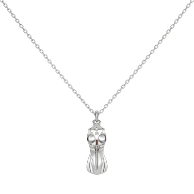 映画「ヱヴァンゲリヲン新劇場版」で、エヴァンゲリオンMark.09に搭乗する時にアヤナミレイ(仮称)が着用したプラグスーツをモチーフにしたネックレス。 金属の厚みに細やかな強弱をつけることで、着用しているかのようなボディラインを表現。 胸元の赤のラインは、職人の手作業により色づけられた日本の伝統工芸「七宝焼き」によるもので、ジュエリーブランドならではの、繊細で深みのあるアイテムに仕上げました。 ネックレスの留め具には、インターフェイスのモチーフがさり気なくデザインされた遊び心溢れるデザイン。