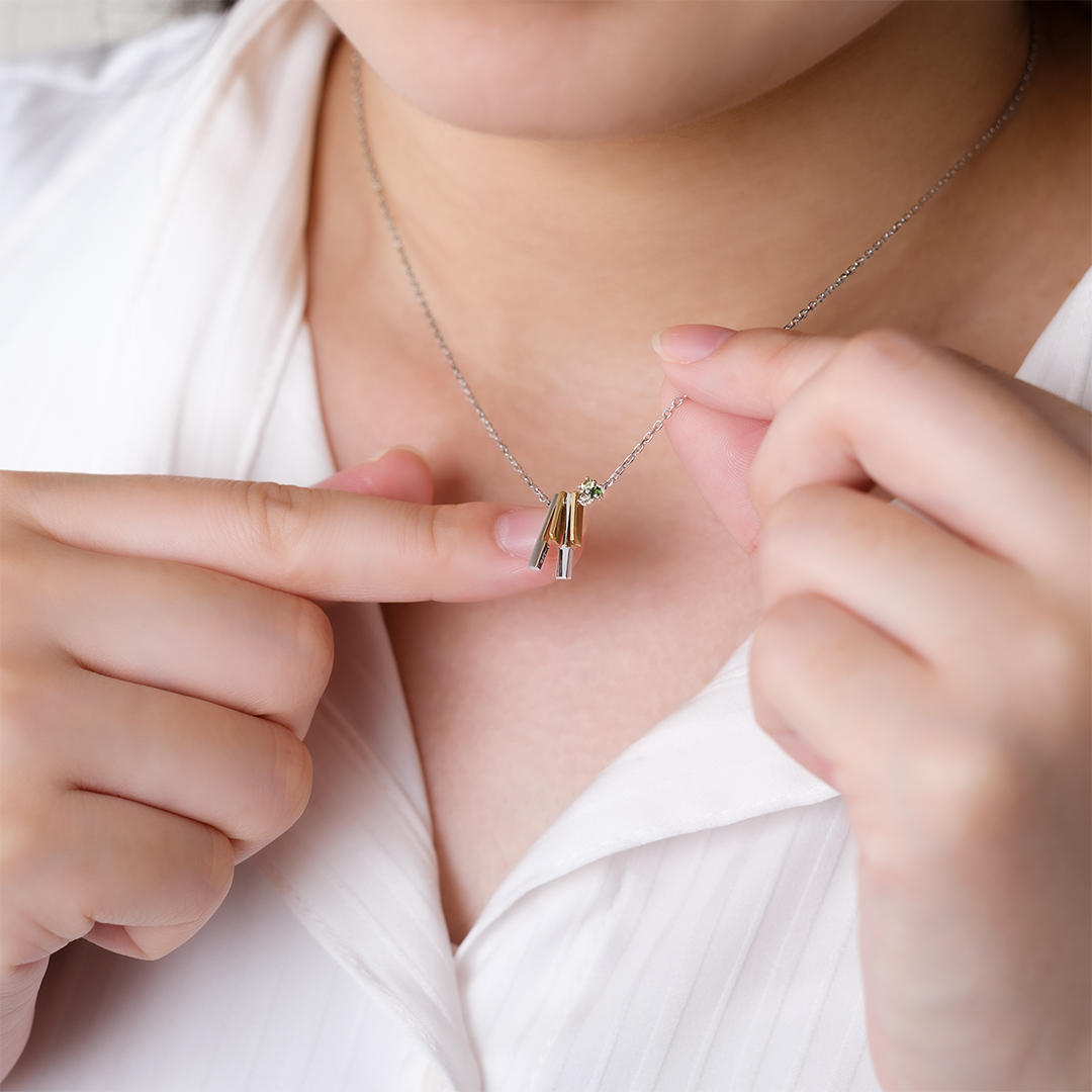グリーンの天然石(ペリドット・グリーンカラートルマリン)は、 劇中でピアノの傍らに佇む木をイメージしています。