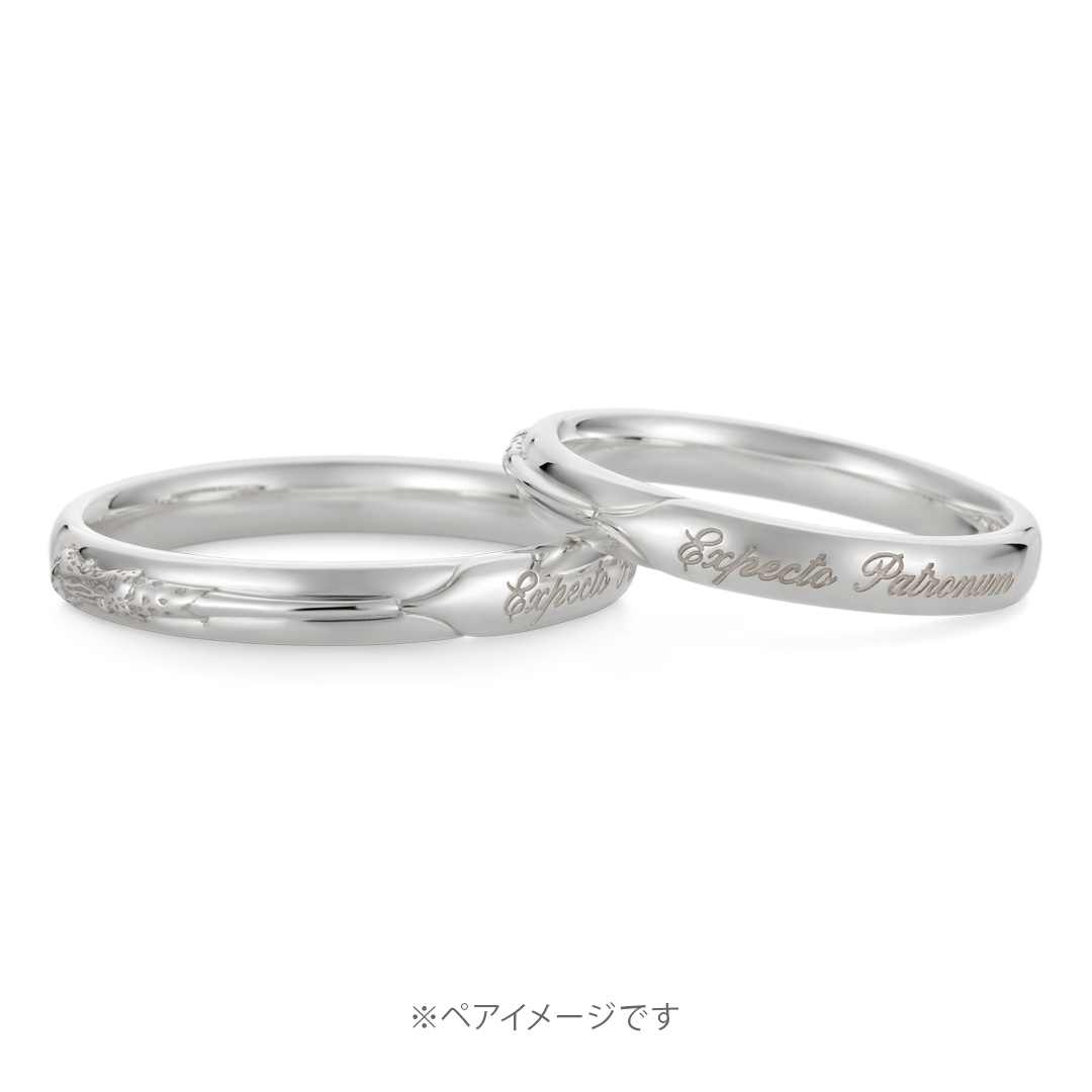 主人公ハリー・ポッターの杖と、吸魂鬼(ディメンター)からの防御の呪文である"Expecto Patronum"を刻みました。デイリー使いしやすいリングで、ペアで身に着けるのもおすすめです。