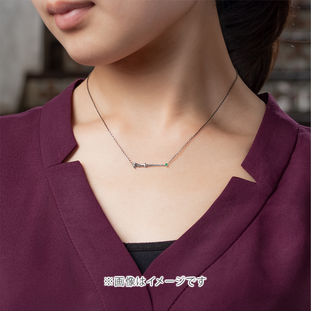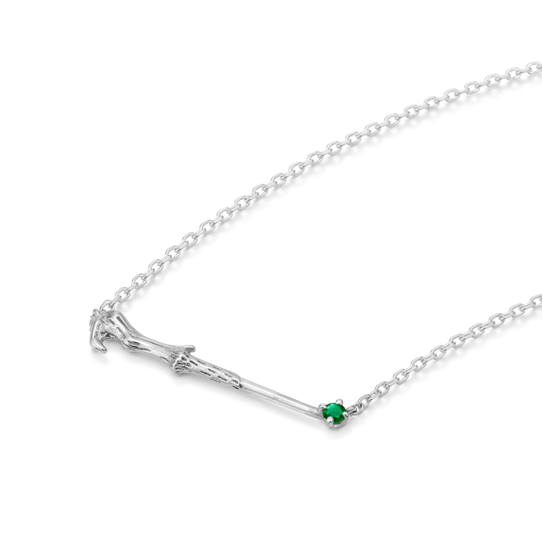 ヴォルデモート卿の持つ杖をイメージしたネックレス。 デイリーに身に着けやすい小ぶりのサイズながらも、360度立体的に作りこまれた繊細な造形が目を引きます。 先端には、杖から放たれる緑の閃光をイメージした宝石・エメラルドを留めて。