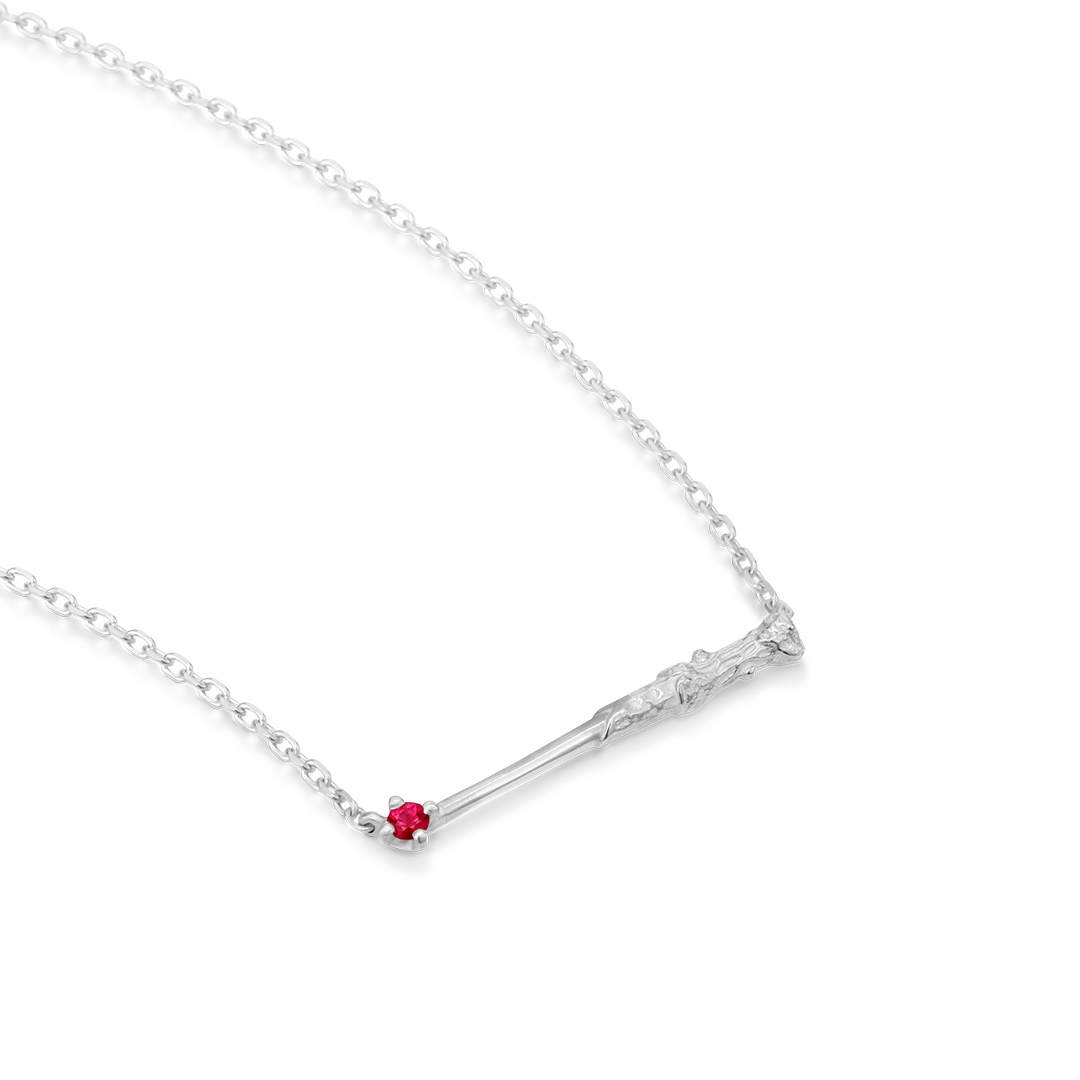 先端には、杖から放たれる赤い閃光をイメージした宝石・ルビーを留めて。