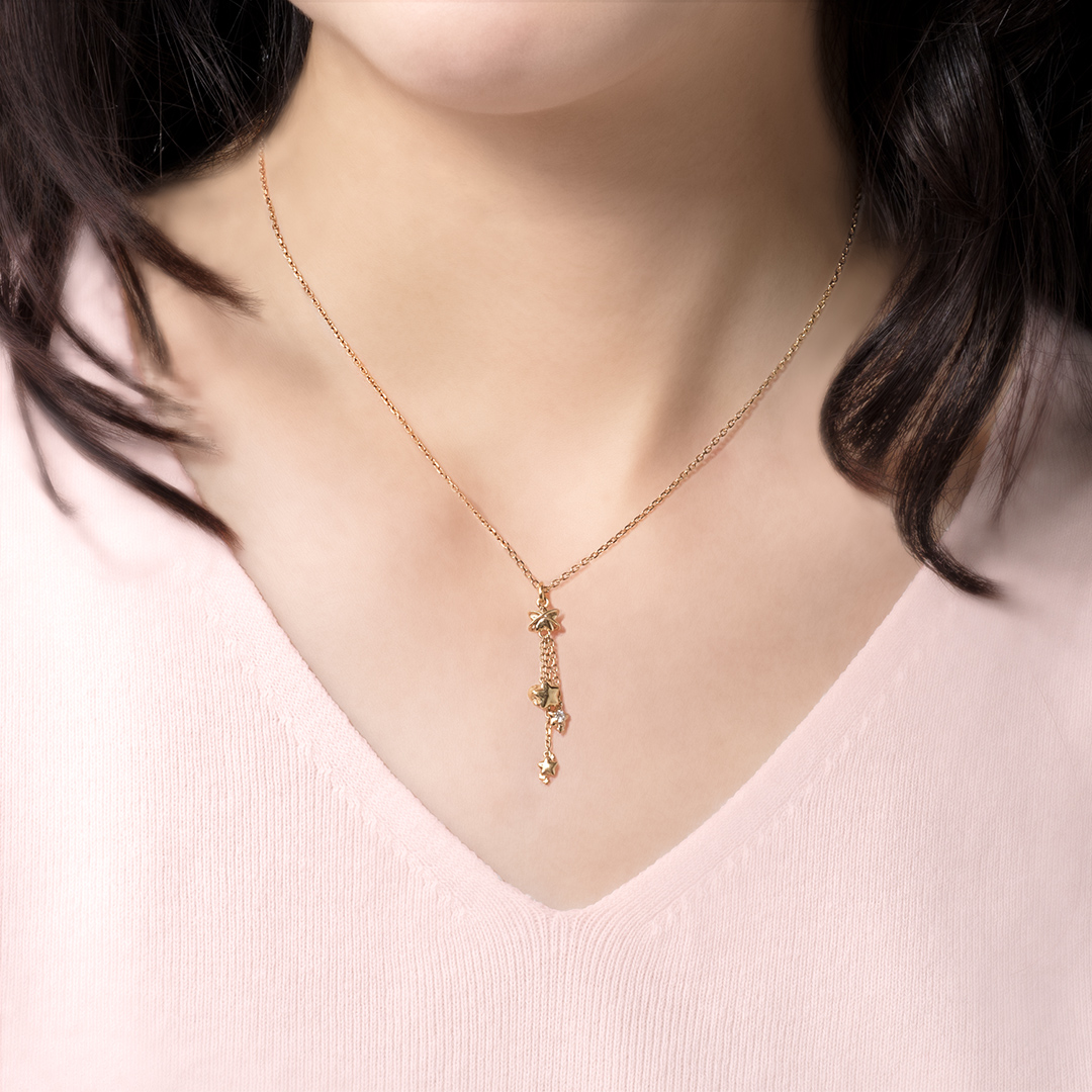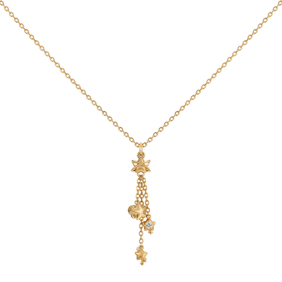 ポップスターからワープスターに乗ったカービィや星がぶらさがって胸元でゆらゆらと楽しげに揺れるネックレス。カービィの世界観をフェミニンなテイストに仕上げました。
