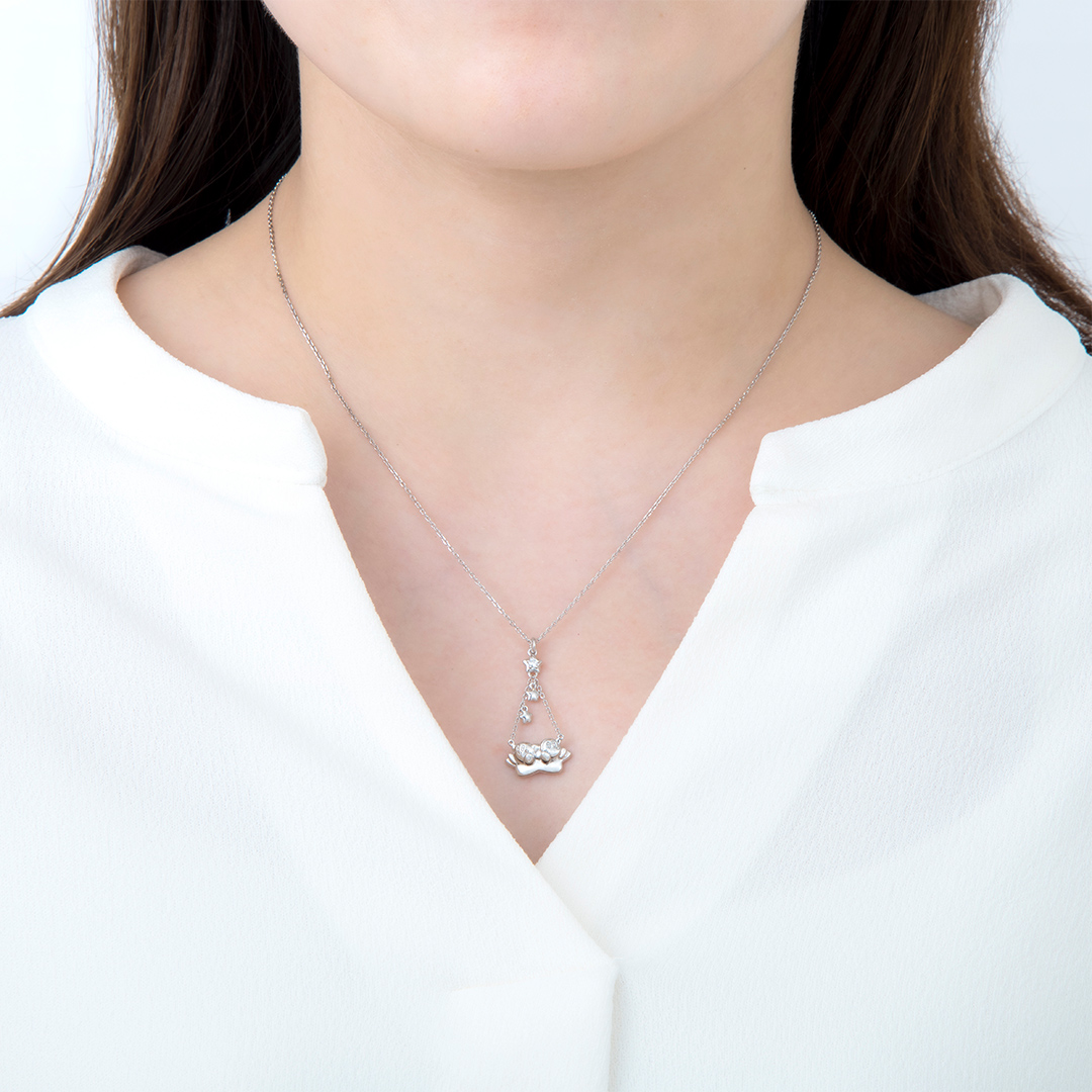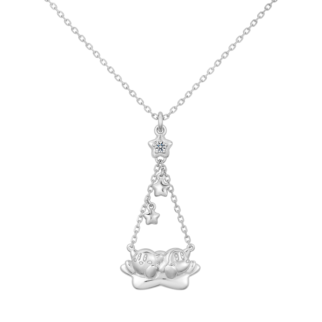 大きなお星さまに乗ってなかよくおさんぽしている、カービィとワドルディのネックレス。ふたりの上にきらきらと揺れて輝く星のチャームもポイント。