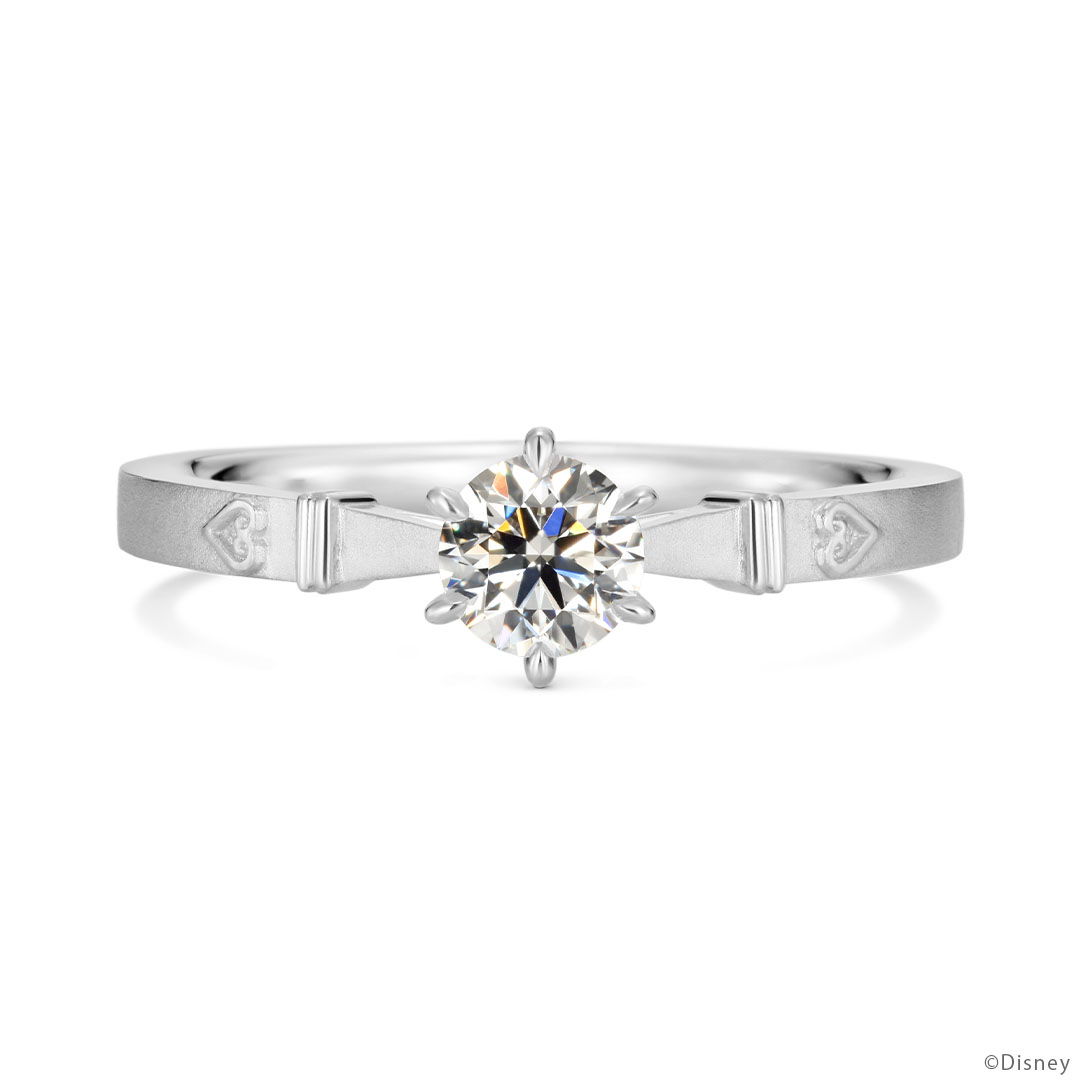 『キングダム ハーツ』の代表的なアイコン「ソラが着用しているネックレスの王冠」を石座に、「ハート」を正面のポイントにして、クラシカルで洗練された印象のソリティアリングにしました。 さり気なくも物語の世界観を映し出したエンゲージリングに、ふたりの永遠の誓いをこめて…。