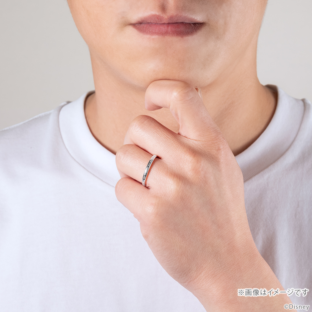 「アクセル」をイメージした宝石と、象徴的なセリフを刻んだリング。内側にはさりげなくマークも追加し、シンプルで身に着けやすいデザインです。