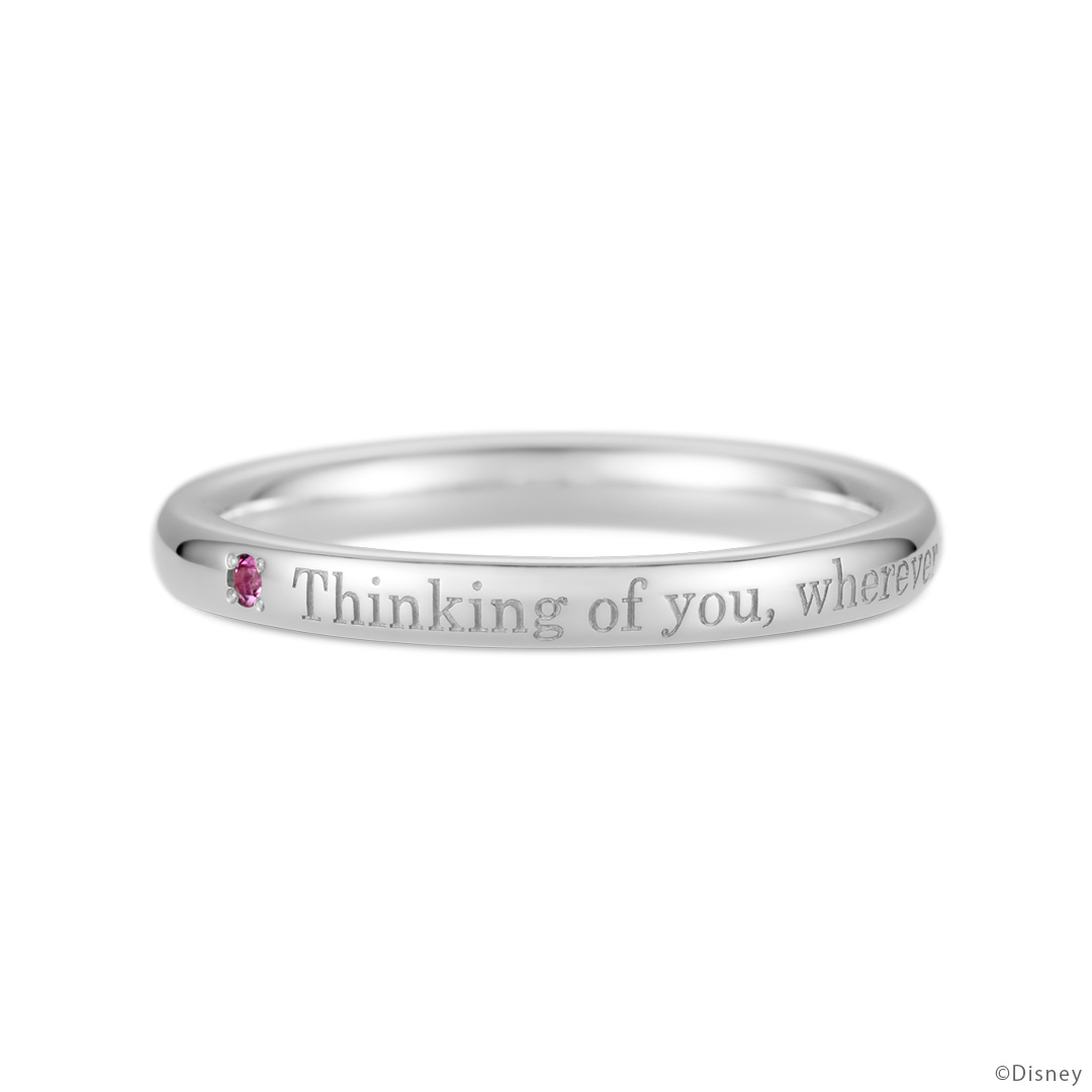 「カイリ」をイメージした宝石と、象徴的なセリフを刻んだリング。内側にはさりげなくマークも追加し、シンプルで身に着けやすいデザインです。