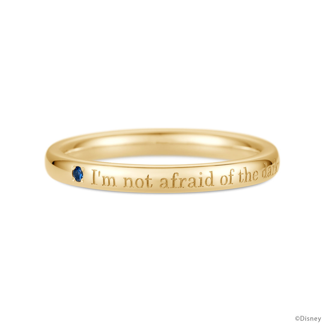 「リク」をイメージした宝石と、象徴的なセリフを刻んだリング。内側にはさりげなくマークも追加し、シンプルで身に着けやすいデザインです。