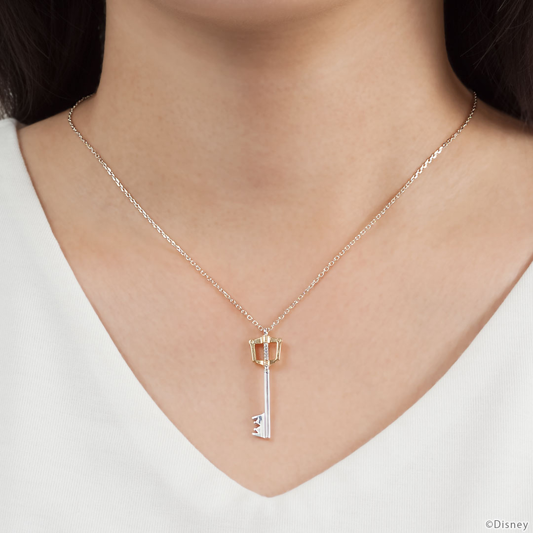 心の強い者だけが扱える伝説の剣「キーブレード」ソラが扱う「キングダムチェーン」をモチーフにしたネックレス。柄の部分は金メッキを施し、忠実に再現しています。