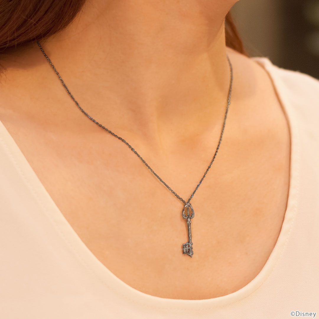 「約束のお守り」と対になるデザインをした、闇を象徴するキーブレードをネックレスに。 剣脊の“闇”という文字をモチーフにした部分まで精巧に表現されています。