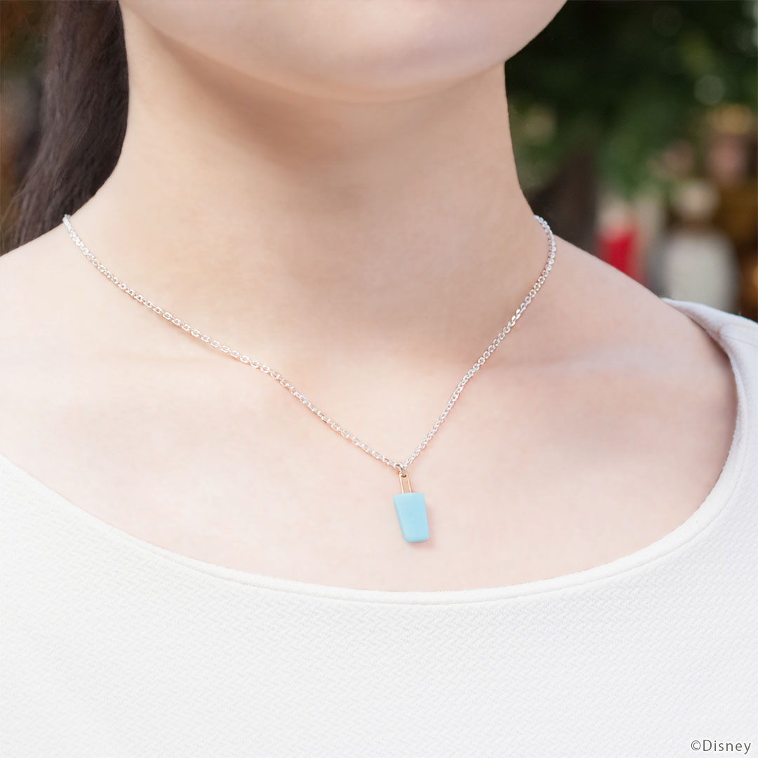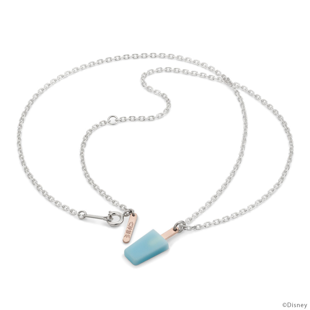 XIII機関の任務が終わるたび、トワイライトタウンの時計台で食べたシーソルトアイス。まるで甘くてしょっぱい味がしそうなほど、再現度高い仕上がりに。ネックレス後ろ部分のチャームには、ロクサスがアクセルへ置いていった「あたり棒」がついています。