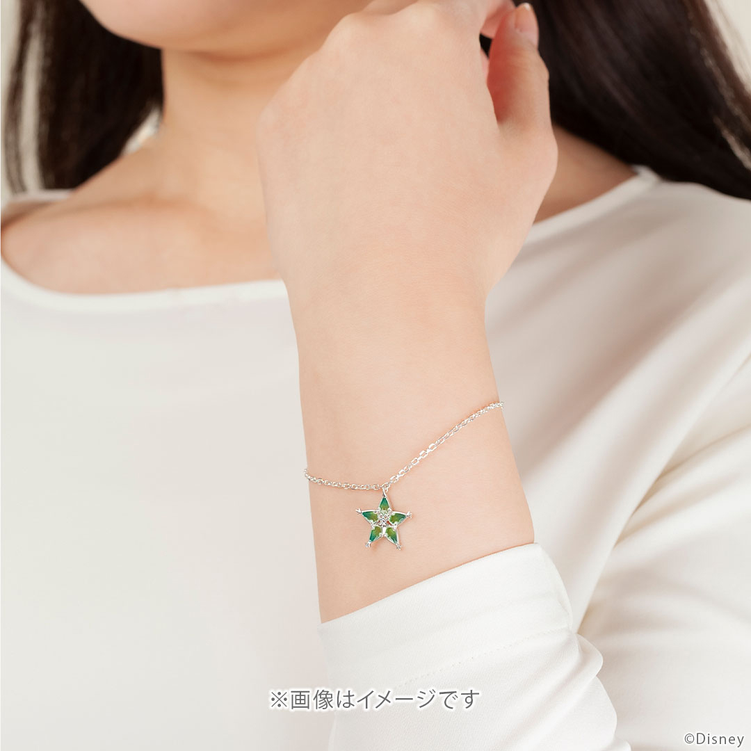 ブレスレットチェーンの先には、つながりのお守りについている5色のチャームをデザインし、細部に至るまで忠実に再現しています。