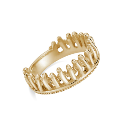 ニョロニョロたちがずらりと並んだファッションリング。群れから離れないよう互いにしっかりとつかまりあって、ゆらゆらと揺れるニョロニョロたち。地平線を目指すその旅は、決して終わることはありません。一見するとクラウンにも見える華のあるデザイン。