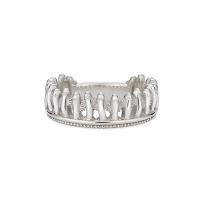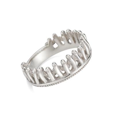ニョロニョロたちがずらりと並んだファッションリング。群れから離れないよう互いにしっかりとつかまりあって、ゆらゆらと揺れるニョロニョロたち。地平線を目指すその旅は、決して終わることはありません。一見するとクラウンにも見える華のあるデザイン。