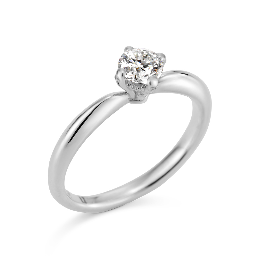 群れから離れないよう互いにしっかりとつかまりあって、ゆらゆらと揺れるニョロニョロたち。 みんなで力を合わせて、しっかりと中央のダイヤモンドを支えてくれています。 一見シンプルなデザインの婚約指輪ですが、サイドから見るとニョロニョロたちと目があって・・・。 個性的なデザインの中にも、身に着けているとなんだかほっこりと癒されそうな雰囲気が。