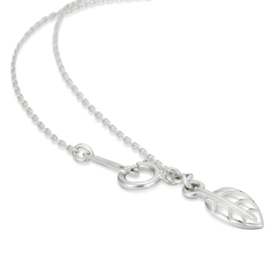 首の後ろに来るチェーンの先には、可愛い葉っぱのデザイン。