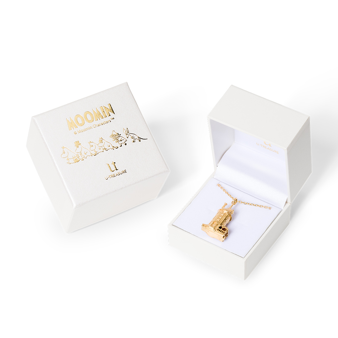 ムーミン一家が暮らし、大勢のお客さんが訪れるムーミンハウスをフル立体化したネックレスです。あたたかみのある家の再現度はもちろん、ベランダから家の中にいる一家とリトルミイが覗けるところなど、ディテールにまでこだわり繊細に作り込んでいます。ベランダの階段部分にあるツマミからは、家の底面を開けることができます。