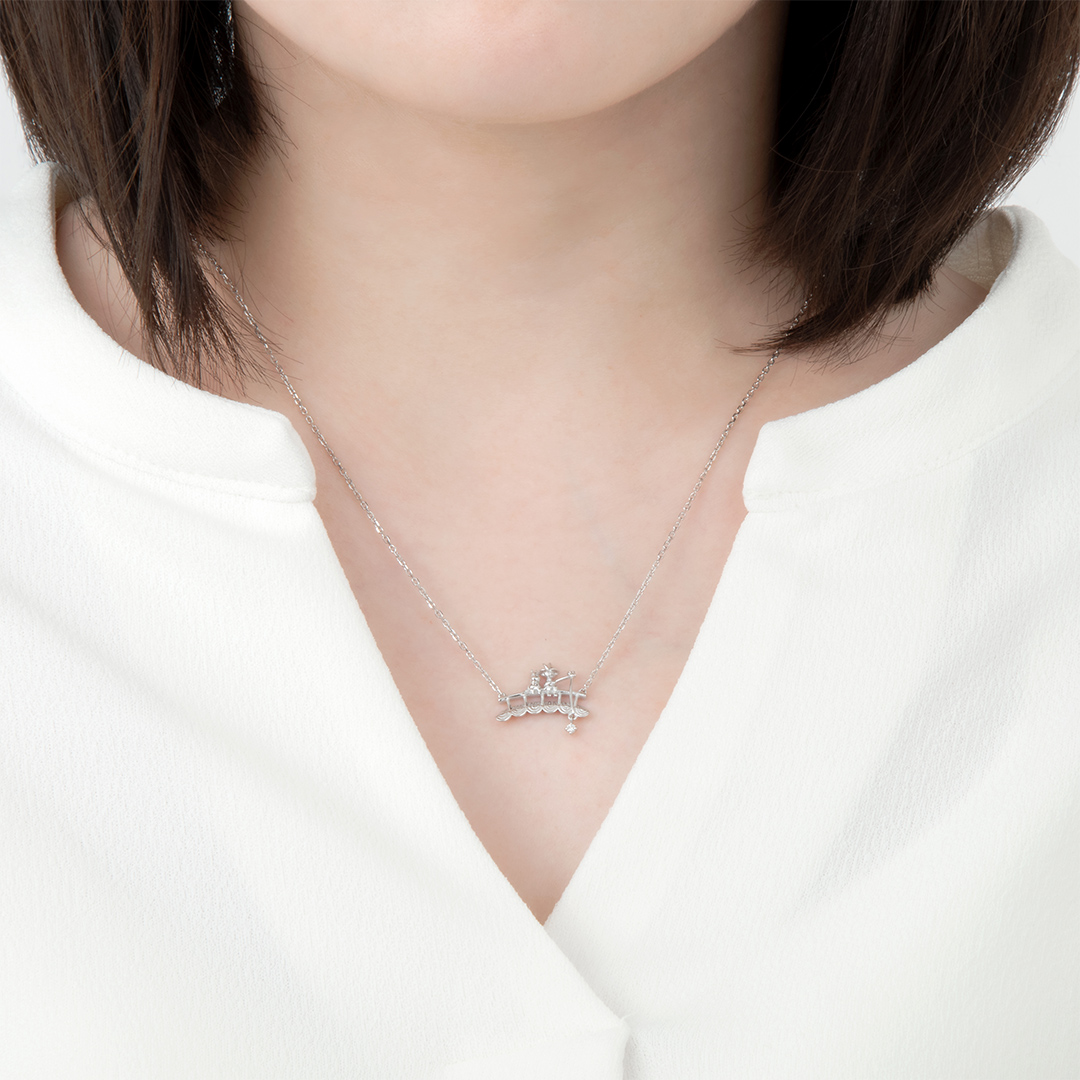 釣り竿の先で揺れるダイヤモンドが遊び心のあるネックレスです。