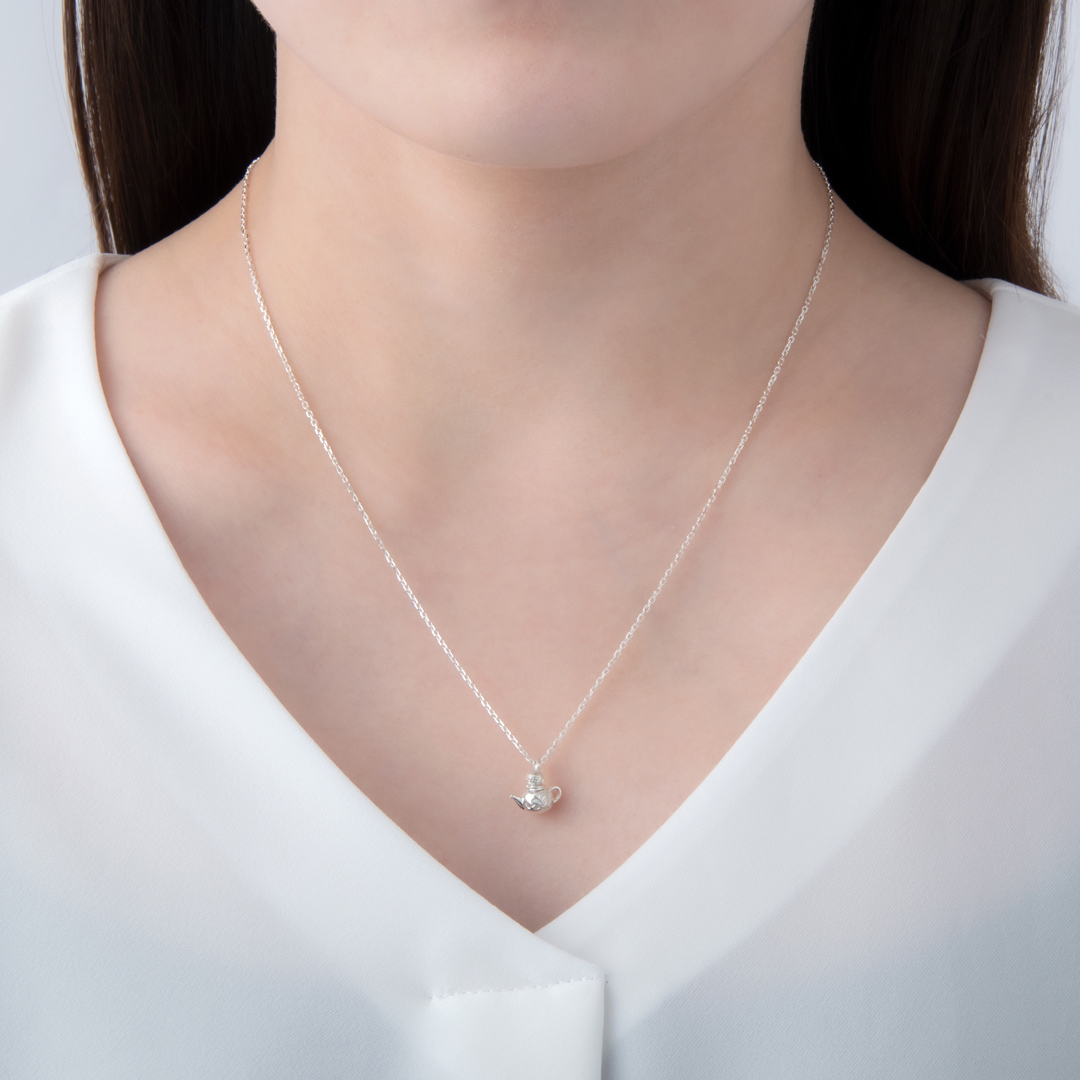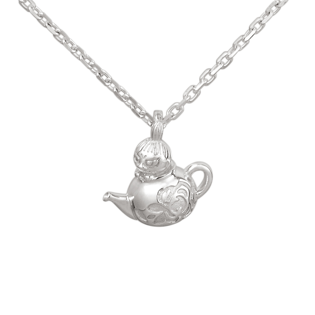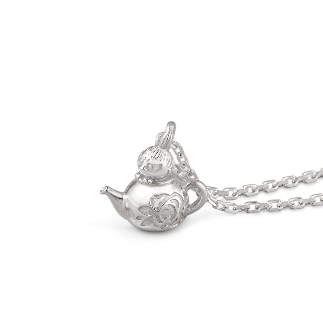 ティーポットの中で遊ぶ姿が可愛いリトルミイ。ミイの表情や、ティーポットの細かいデザインまで表現したネックレスです。