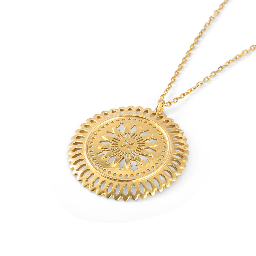 フィンランドで愛されているレースをイメージしたネックレス。レース模様の中にさりげなく隠れている
