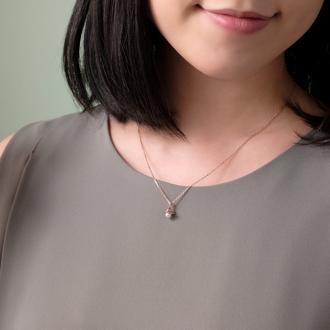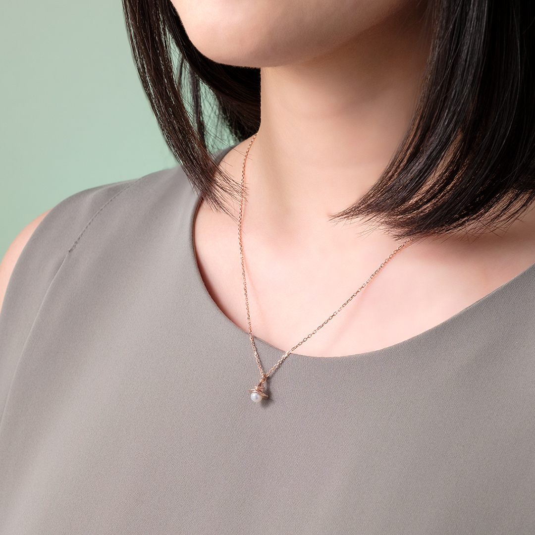 肌なじみのいいピンクゴールドメッキを施し、普段のファッションへ取り入れやすいよう、さりげないサイズ感にこだわってデザインしたアイテムです。