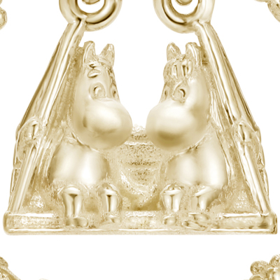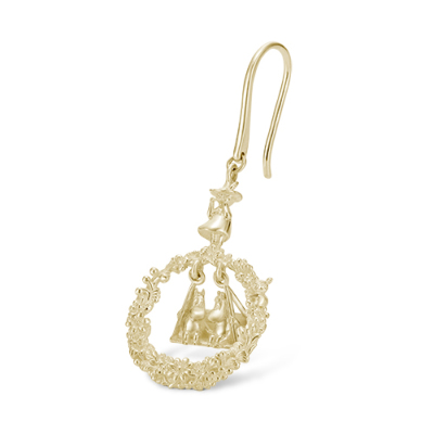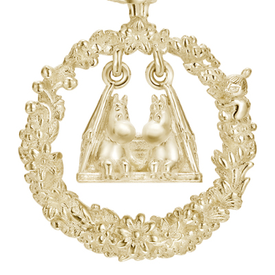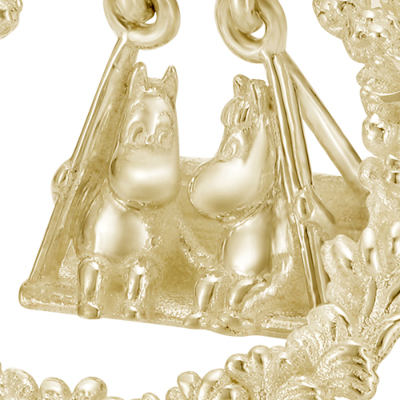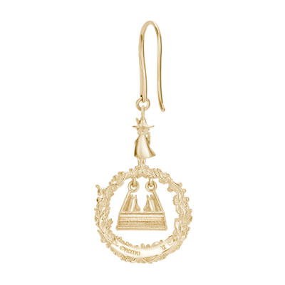 春になると花が咲き乱れるムーミン谷。そのムーミン谷で楽しげに遊ぶキャラクターたちをイメージして作られたピアス。中央には仲良くブランコに乗るムーミンとスノークのおじょうさんが。身に着けるとブランコがゆらゆらと揺れ、視線を集めます。