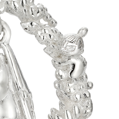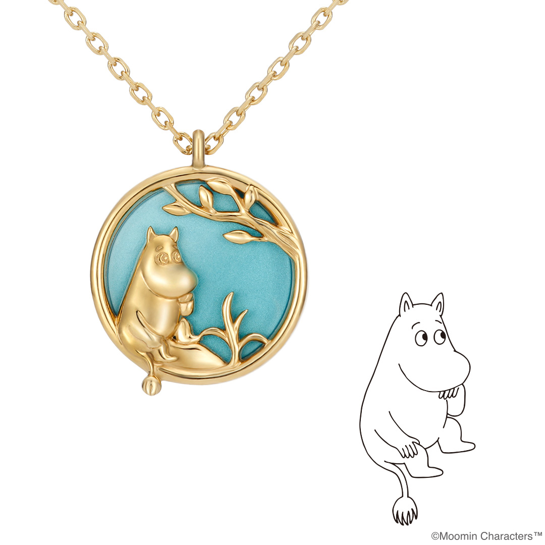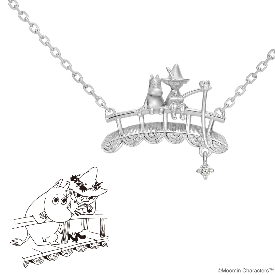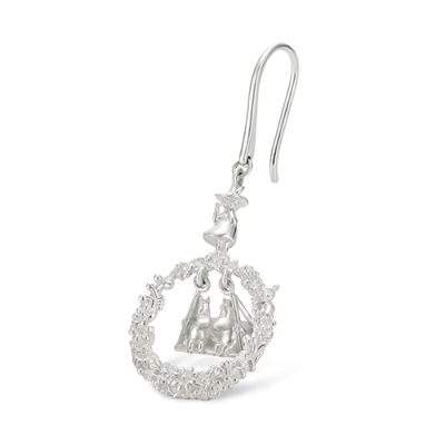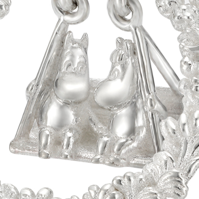 春になると花が咲き乱れるムーミン谷。そのムーミン谷で楽しげに遊ぶキャラクターたちをイメージして作られたピアス。中央には仲良くブランコに乗るムーミンとスノークのおじょうさんが。身に着けるとブランコがゆらゆらと揺れ、視線を集めます。