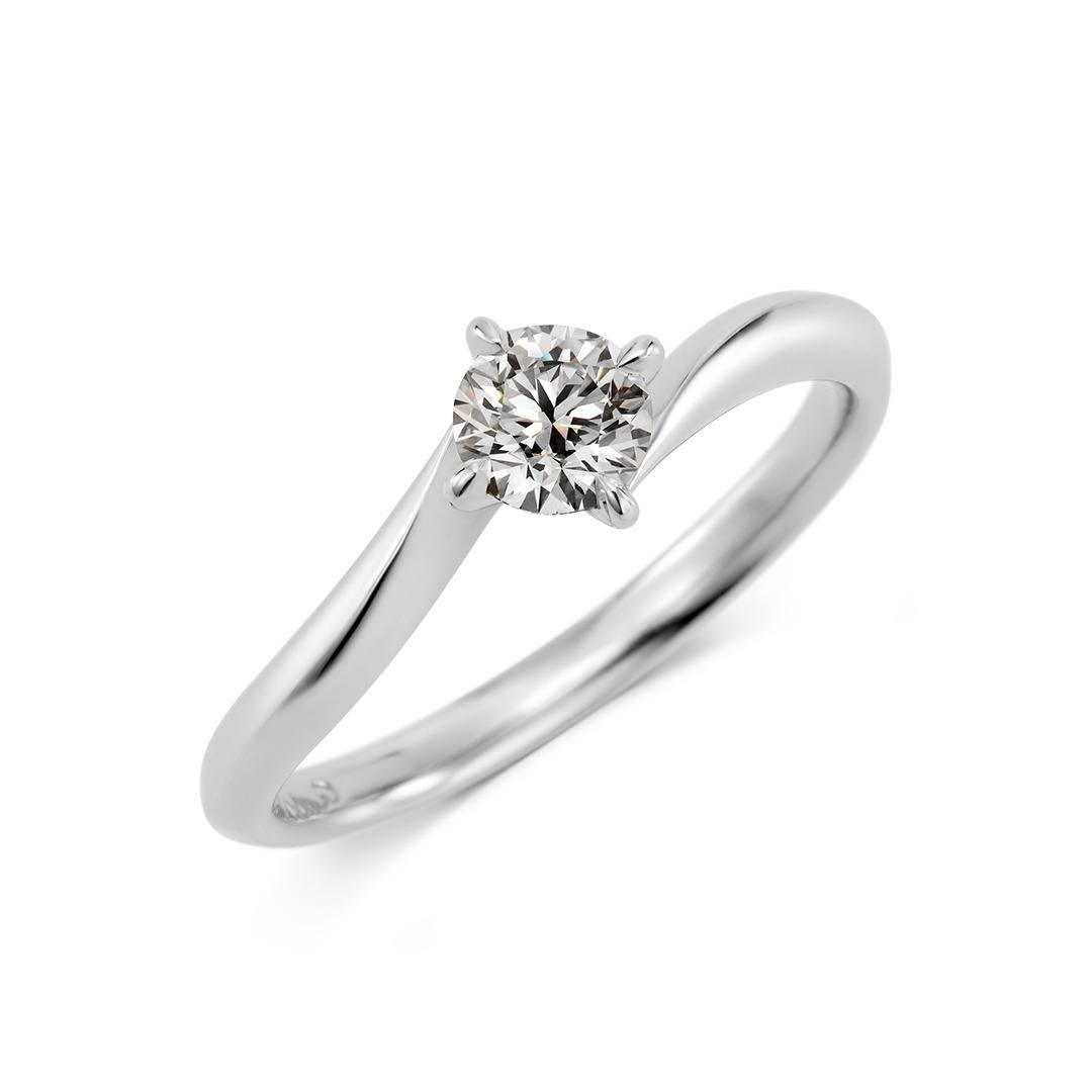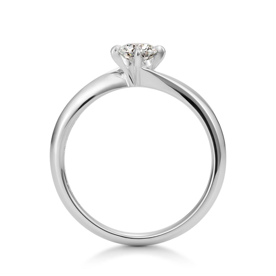 ダイヤモンドを4点の爪でセット。6本爪と比べてダイヤモンドを覆う面が少なく、石が大きく華やかに引き立ちます。細身のアームながらも内側にしっかりと金属を用いて内甲丸仕上げをしているため、気持ちの良い着け心地を感じていただけます。