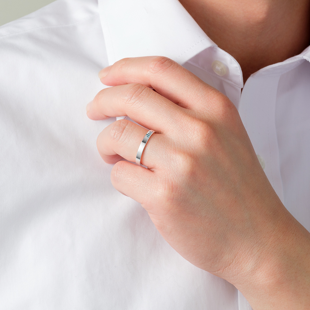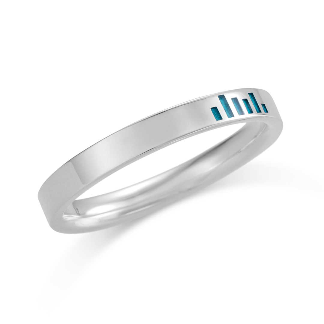 イコライザーをイメージしたリングです。2本重ねることで、デュエットや二人のハーモニーなどを連想させるデザインです。
