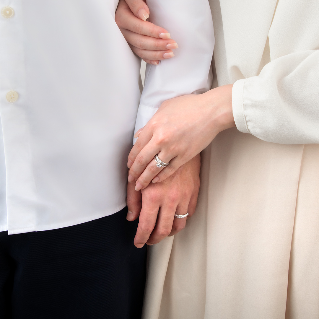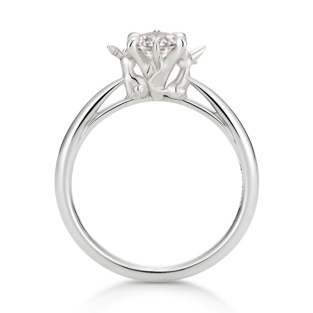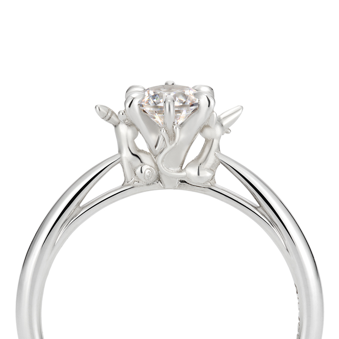 エーフィとブラッキーが、中央のキュービックジルコニアの前にたたずむリング。大好きなポケモンをいつでもそばに感じて。上から見た様子は、シンプル・定番のデザイン。お持ちの指輪と重ねづけしたりと、普段のファッションにも合わせやすいのが魅力。