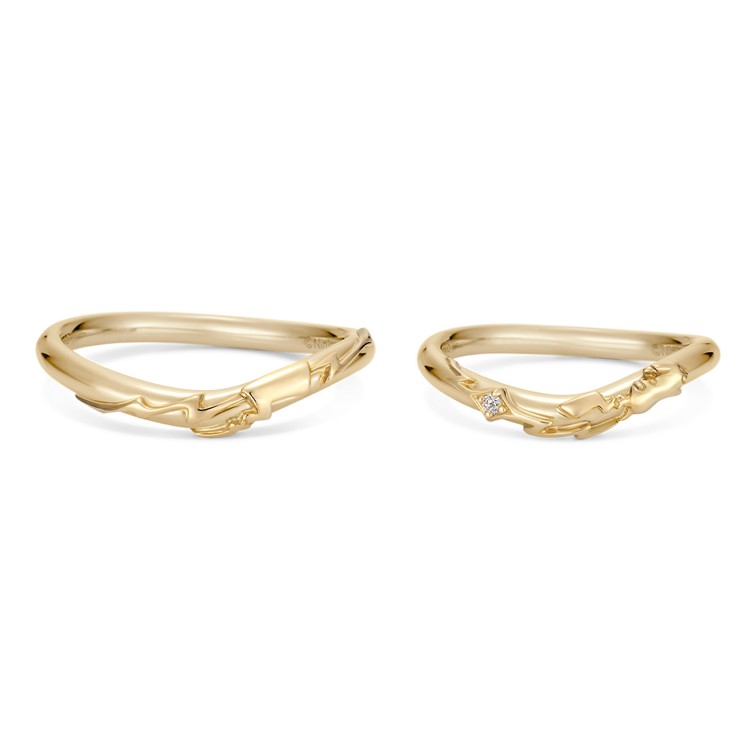身体中に電気が走る、運命的な出会い。駆け抜ける“ピカチュウ”をモチーフにした結婚指輪。これから始まる新しい人生のスタートをポケモンと一緒に。