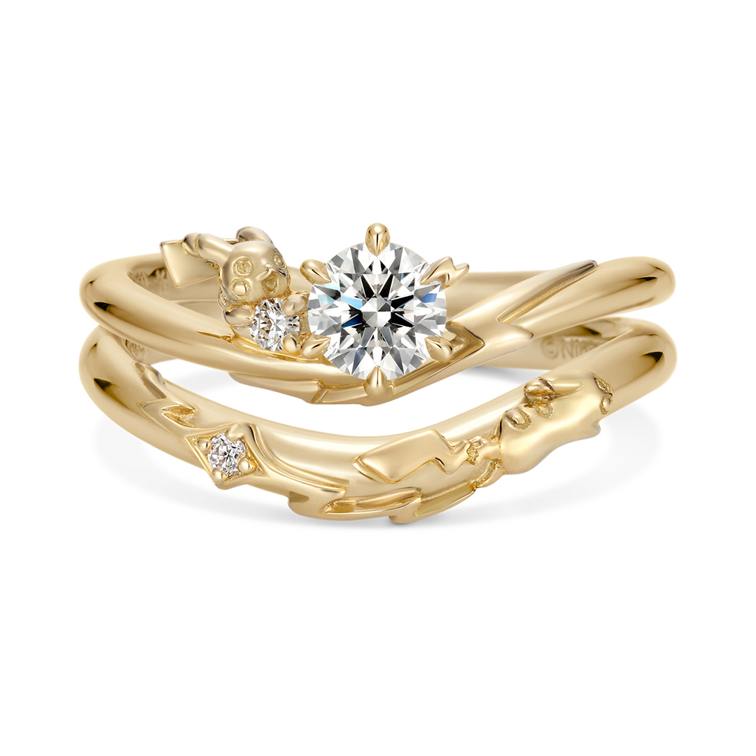 結婚指輪「ピカチュウ でんきモチーフペアリング」と重ねて、セットリングとして身に着けても素敵です。
