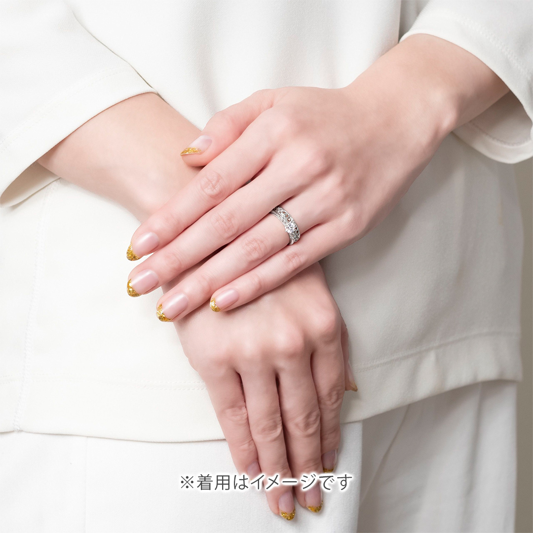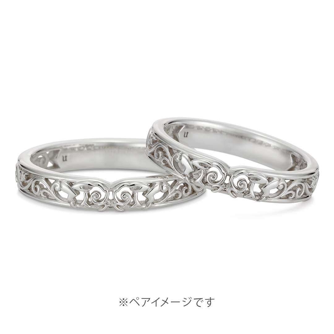 リングに秘めた遊び心は、ふたりだけのひみつ。 スクロールの透かし模様にオスとメスの"ピカチュウ"が隠れています。 いつまでも途切れることのない模様に、ふたりの永遠の絆を重ねて――。