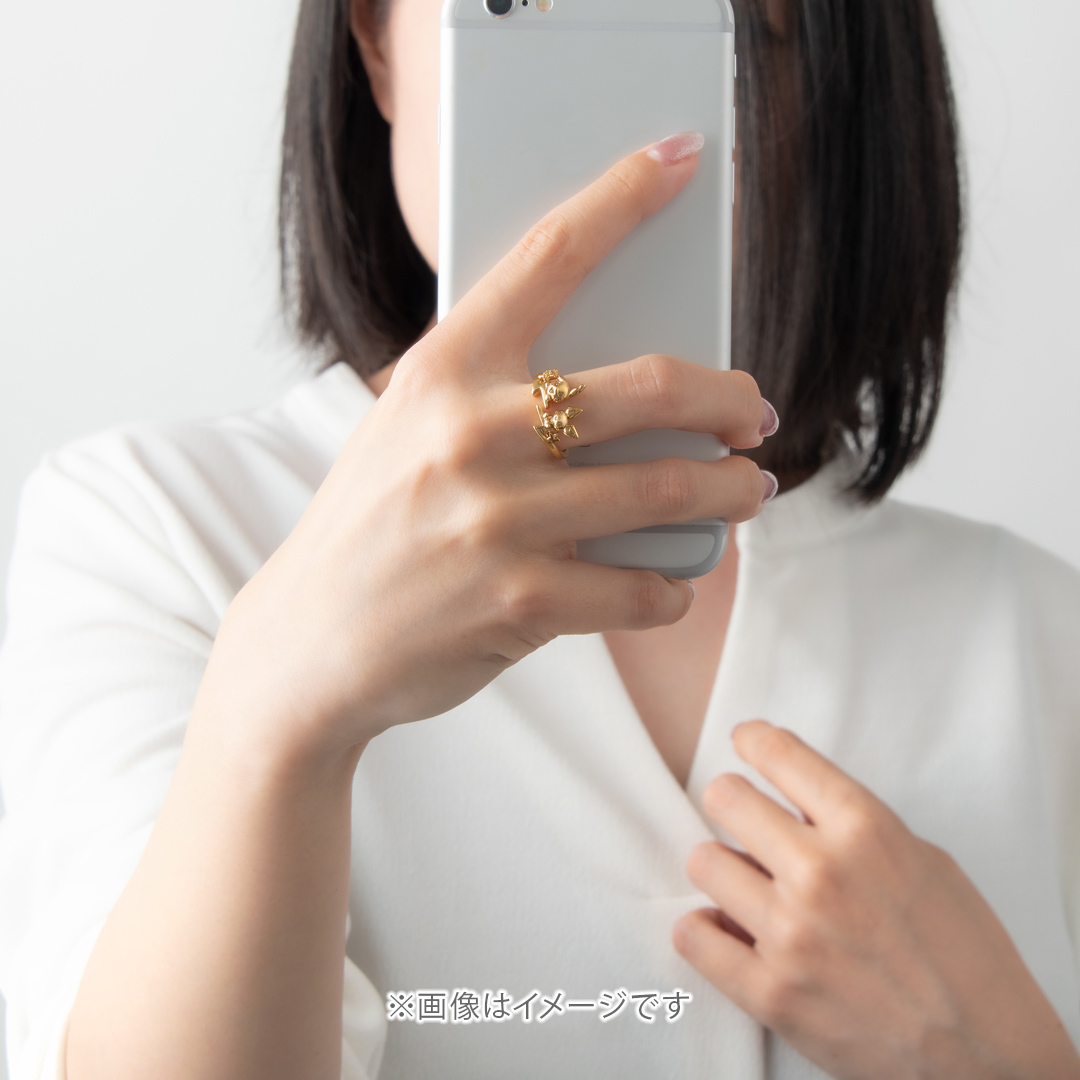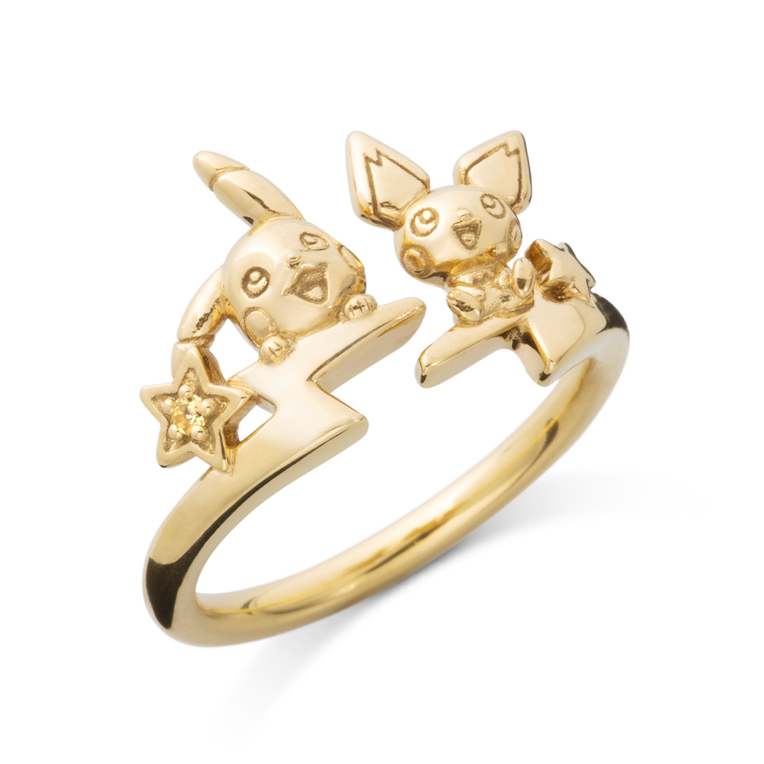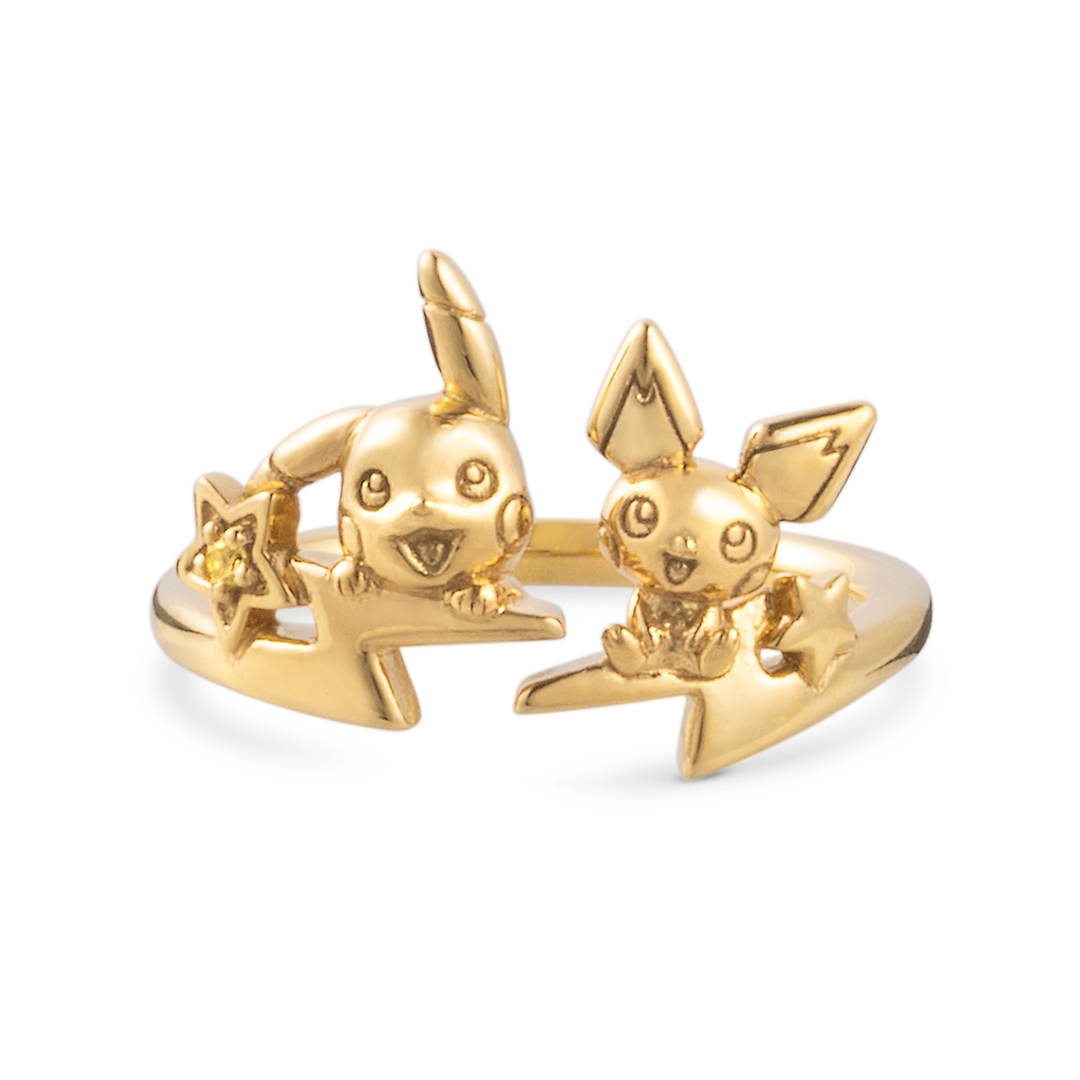 「ピチュー」と「ピカチュウ」のフォークリング。いなずまをモチーフにキュートな表情の2匹を可愛くデザイン。