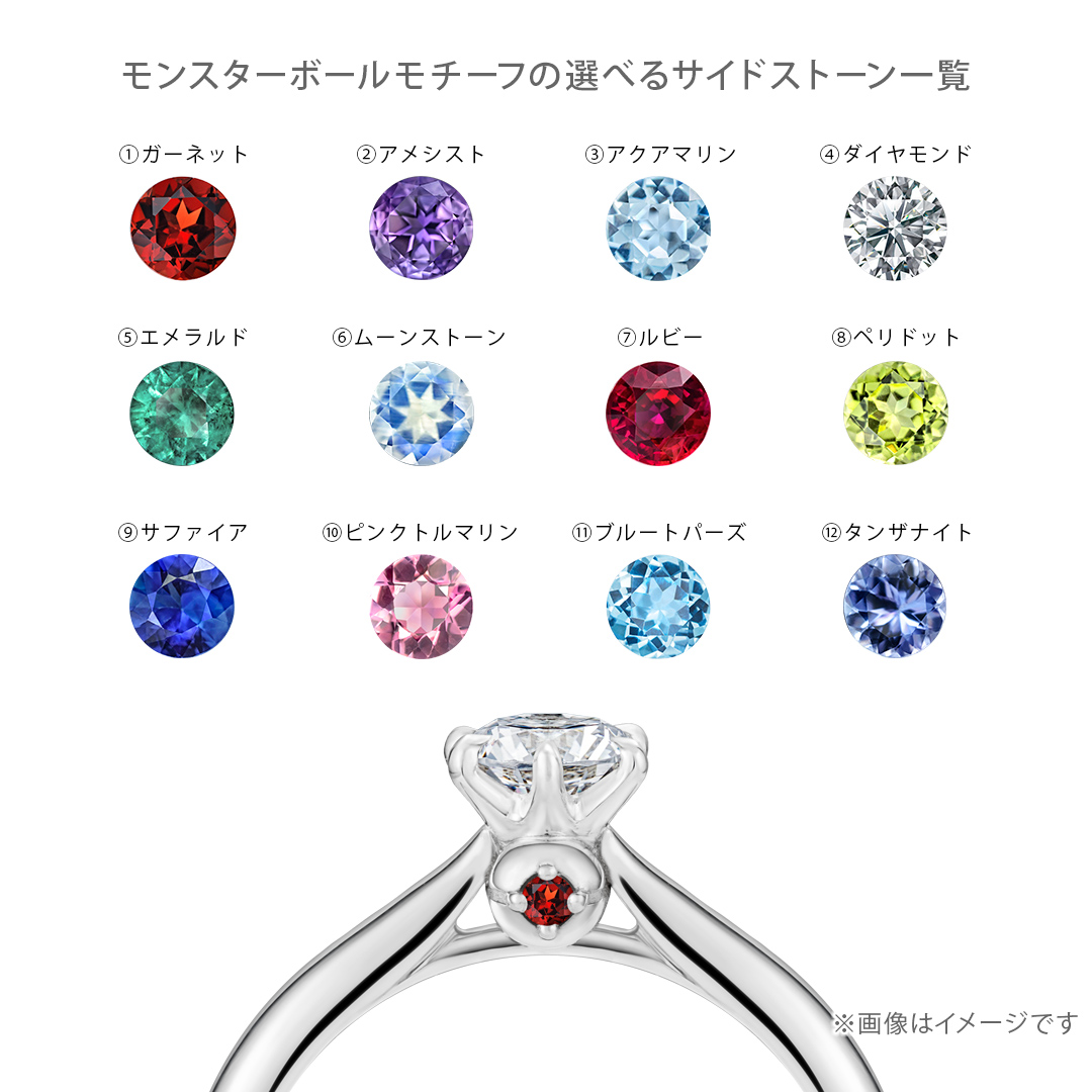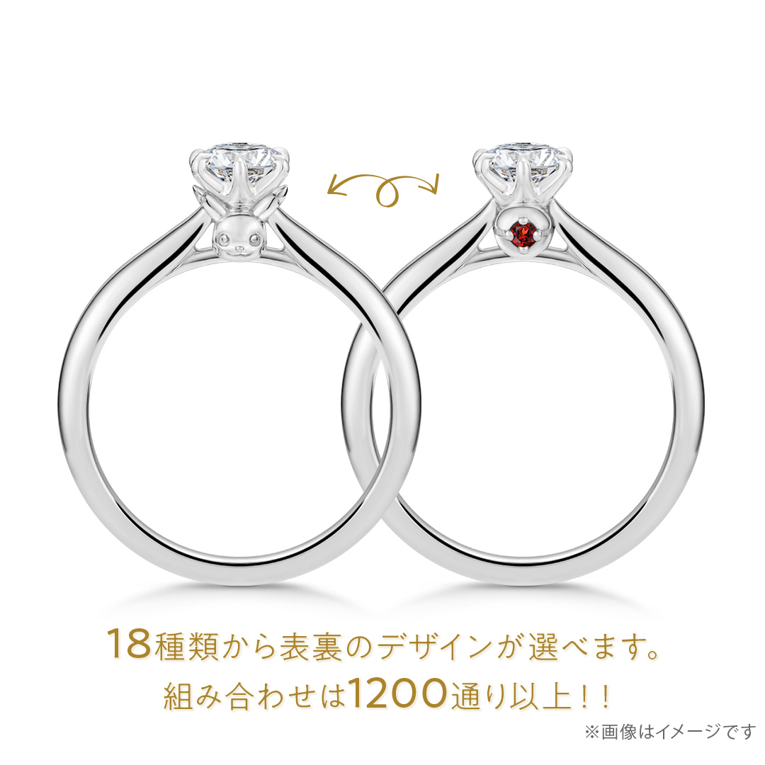 セレクトオーダーができるポケモンのソリティアリングが登場!「ポケモンのマーク」「素材」「カラーストーン」を組み合わせて、楽しく簡単に婚約指輪を作製できます。
