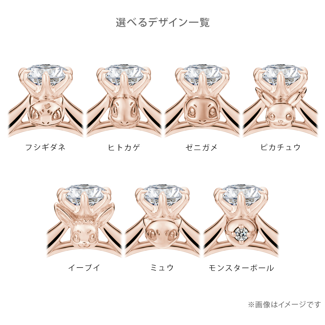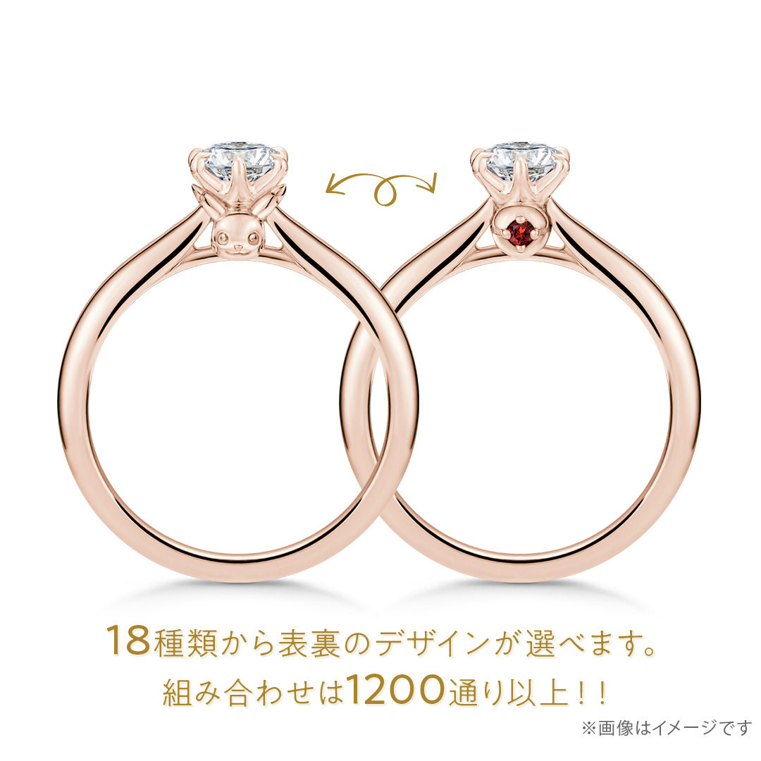 セレクトオーダーができるポケモンのソリティアリングが登場!「ポケモンのマーク」「素材」「カラーストーン」を組み合わせて、楽しく簡単に婚約指輪を作製できます。