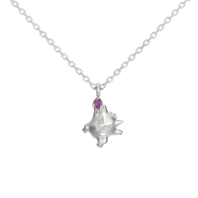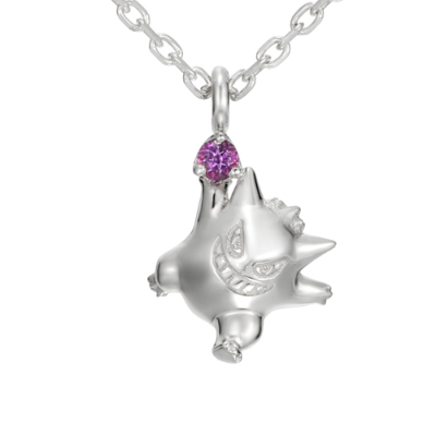 紫色の宝石・アメシストを持ったゲンガー。 表情やフォルム、背中のトゲトゲなど細部までこだわり、ゲンガ―の魅力をたっぷり表現しています。 さりげなく身に着けられるサイズなので、さまざまなファッションに取り入れられるのも魅力。