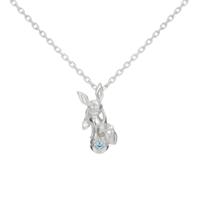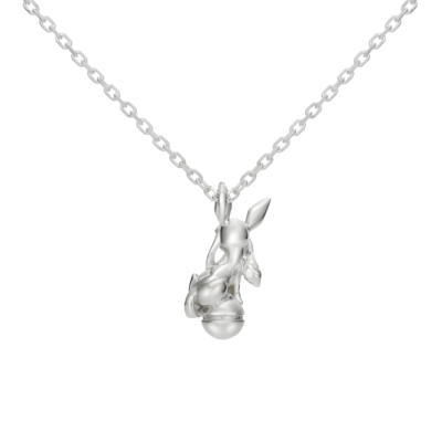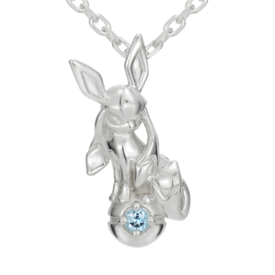 “グレイシア”がモンスターボールの上にちょこんと乗ったデザイン。 特徴的なひし形の耳、しっぽの先に至るまで360度立体的に製作し、“グレイシア”のクールなたたずまいを再現しています。 モンスターボールには、“グレイシア”をイメージした宝石・ブルートパーズを留めて。 シルバー素材との寒色系の組み合わせは、こおりタイプの“グレイシア”にぴったり。