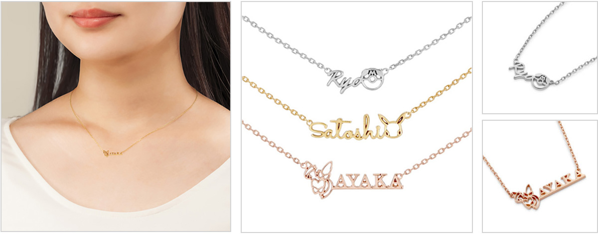 ピカチュウ、イーブイ&フレンズ、ミュウなど、大好きなポケモンといつも一緒に…。ポケモンが愛らしくデザインされた、U-TREASUREオリジナルデザインのネームネックレス。海外でも定番人気のネームネックレスは、プレゼントとしてもおすすめ。さり気ないサイズ感で、デイリーに身に着けやすいのも魅力です。