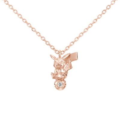 モンスターボールの上にちょこんと乗ったピカチュウが、元気に手をあげているデザイン。ピカチュウの特徴的な耳やギザギザのしっぽ、表情に至るまで360度立体的に再現しました。モンスターボールにはダイヤモンドが留められています。ネックレス後ろ側のチャームにも、さり気なくモンスターボールをデザインして。ポケモンの世界観がぎゅっと詰まったアイテムです。さりげなく身に着けられるサイズで、さまざまなファッションに取り入れられるのも魅力。