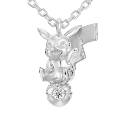 モンスターボールの上にちょこんと乗ったピカチュウが、元気に手をあげているデザイン。ピカチュウの特徴的な耳やギザギザのしっぽ、表情に至るまで360度立体的に再現しました。モンスターボールにはダイヤモンドが留められています。ネックレス後ろ側のチャームにも、さり気なくモンスターボールをデザインして。ポケモンの世界観がぎゅっと詰まったアイテムです。さりげなく身に着けられるサイズで、さまざまなファッションに取り入れられるのも魅力。