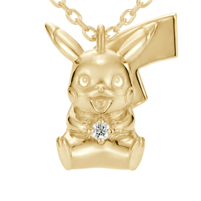 ダイヤモンドを大切に抱えたピカチュウが、まるであなたを見守っているような姿が愛らしいデザイン。ピカチュウの特徴的な耳やギザギザのしっぽ、表情に至るまで360度立体的に再現しました。ネックレス後ろ側のチャームにも、さり気なくモンスターボールをデザインして。ポケモンの世界観がぎゅっと詰まったアイテムです。