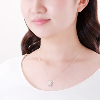 ダイヤモンドを大切に抱えたピカチュウが、まるであなたを見守っているような姿が愛らしいデザイン。ピカチュウの特徴的な耳やギザギザのしっぽ、表情に至るまで360度立体的に再現しました。ネックレス後ろ側のチャームにも、さり気なくモンスターボールをデザインして。ポケモンの世界観がぎゅっと詰まったアイテムです。